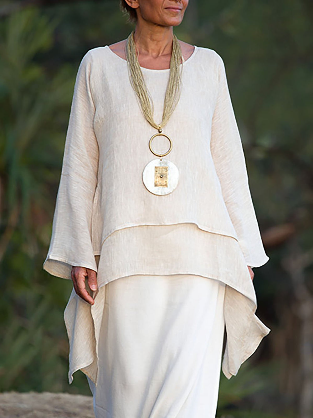 "Dodaj swojemu codziennemu wyglądowi tego czegoś dzięki tej swobodnej bluzce! Ta średniej długości tunika wykonana z miękkiej mieszanki bawełny zachwyca sylwetką w kształcie litery A, długimi rękawami i luźnym krojem. Idealna na każdą okazję - ciesz się wygodą i stylem przez cały dzień.