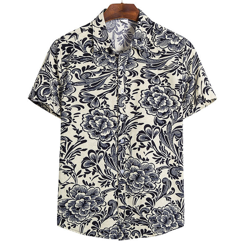 Entdecken Sie eine stilvolle Kombination aus Eleganz und Lässigkeit mit unserem bedruckten Kurzarmhemd für Herren aus Baumwolle und Leinen. Speziell für den modernen, modebewussten Mann entworfen, verbindet dieses Hemd mühelos Raffinesse und Komfort. Es ist perfekt für jede Gelegenheit, ob im Büro oder bei einem lockeren Treffen mit Freunden.